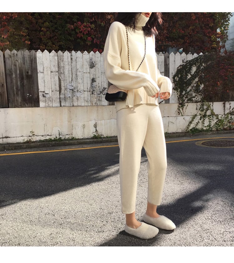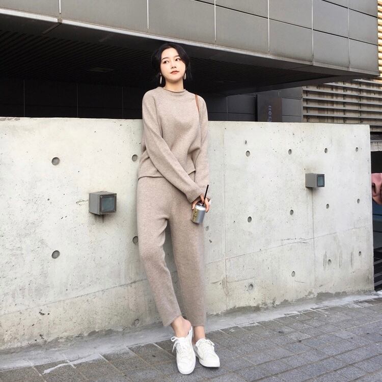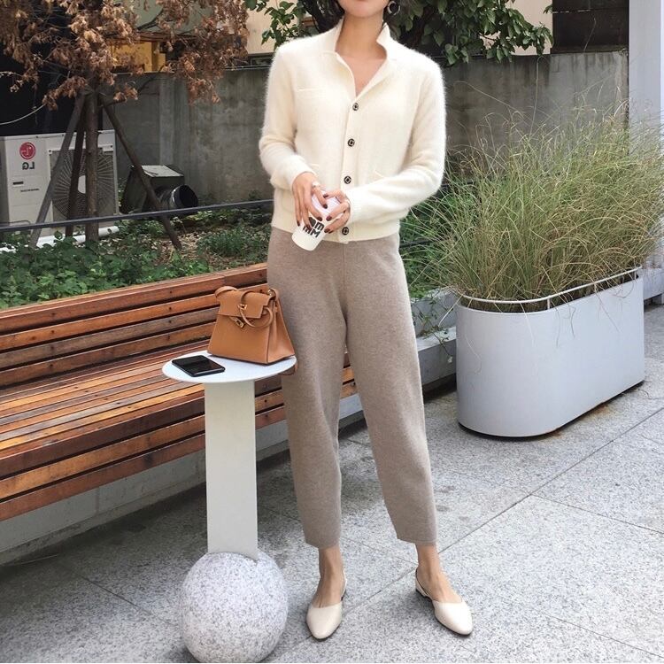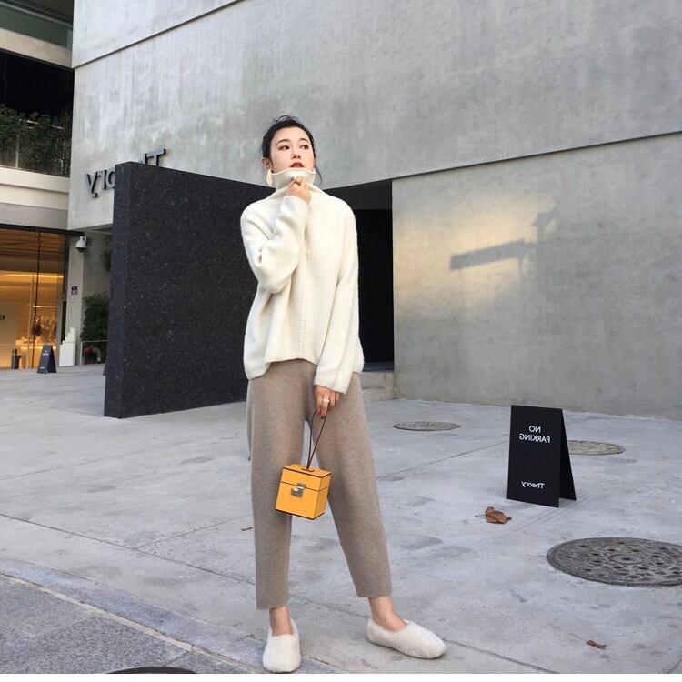 PT-0005 9分丈 ウール 秋冬 ワイドストレート 起毛厚手 ニット パンツ カジュアルパンツ レディース シンプル 可愛い お洒落 カジュアル
