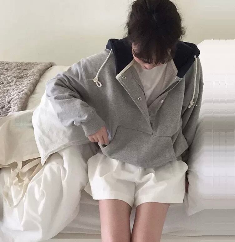 TS-0035 配色 バイカラー フード シンプル 長袖 レディース カジュアル トップス 可愛い お洒落