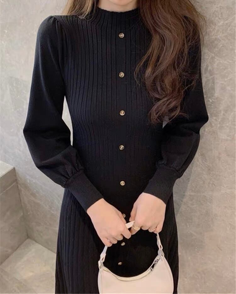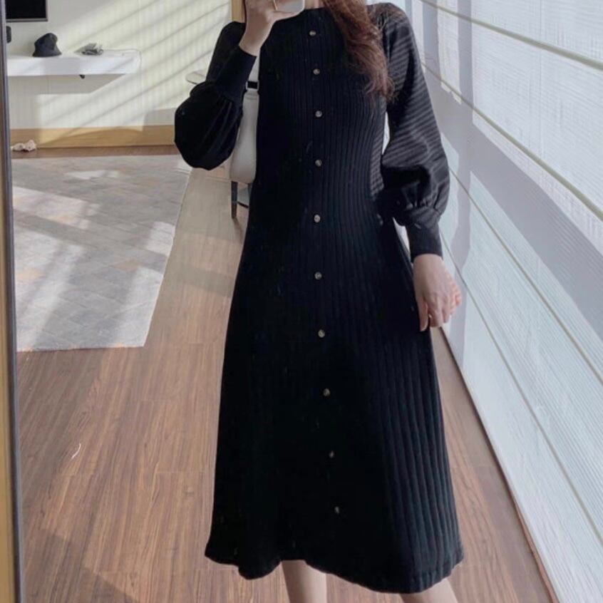 ▫️ハイネックボタンミディニットワンピース