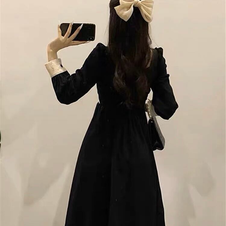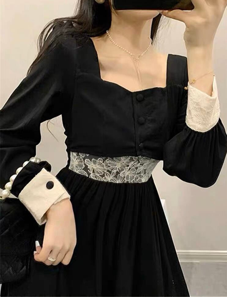 OP-0046 レース 切り替え 上品 ワンピース ロング丈 長袖 レディース カジュアル シンプル 可愛い ナチュラル お洒落