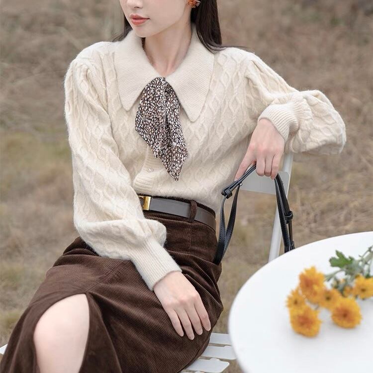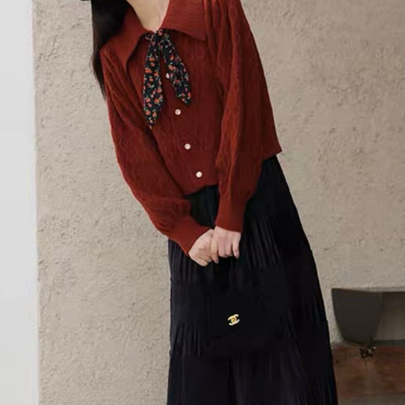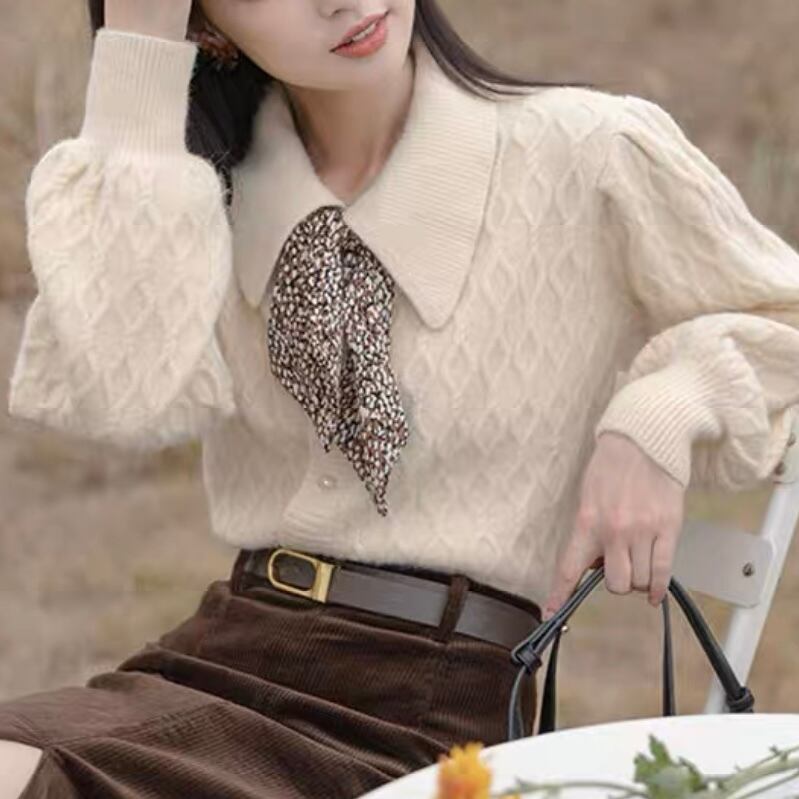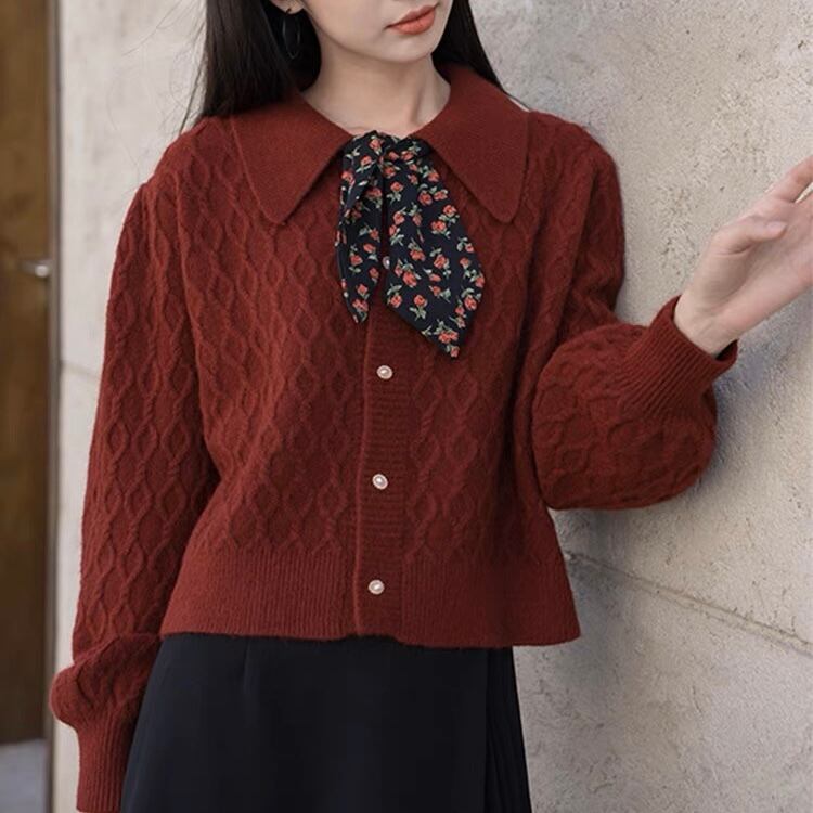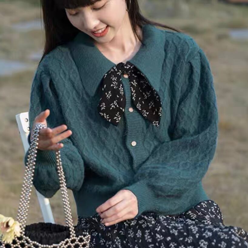 NT-0091 リボン付き 上品 ニット カーディガン 長袖 レディース カジュアル シンプル 可愛い ナチュラル お洒落