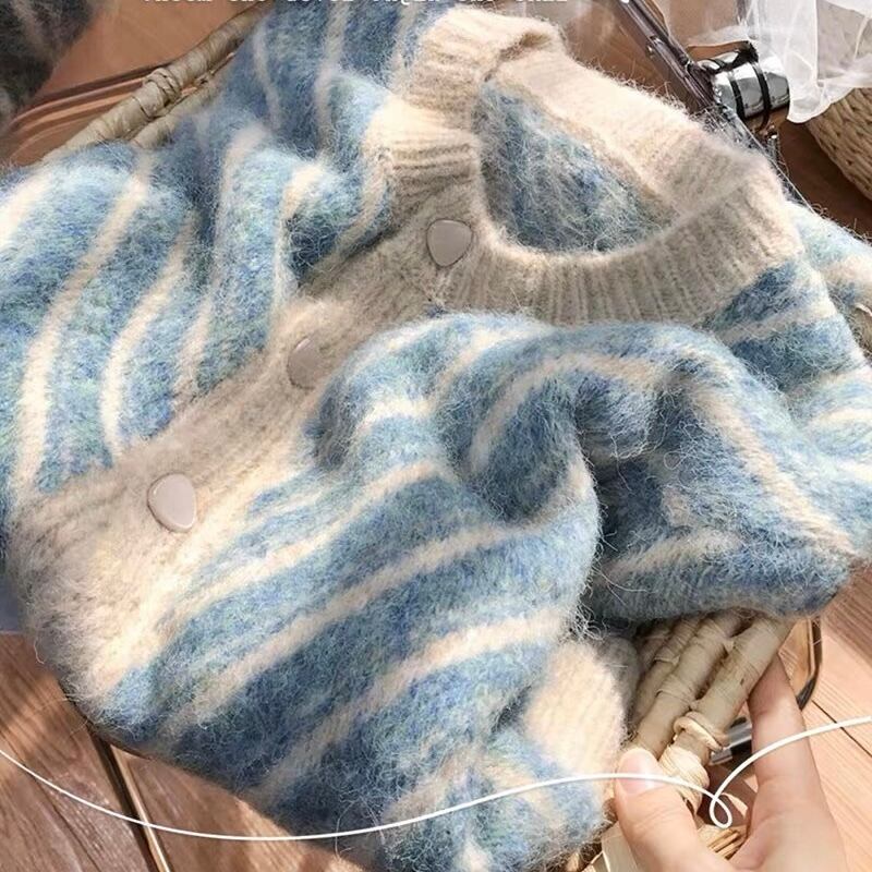 ▫️ブルー×ベージュアンゴラニットカーディガン