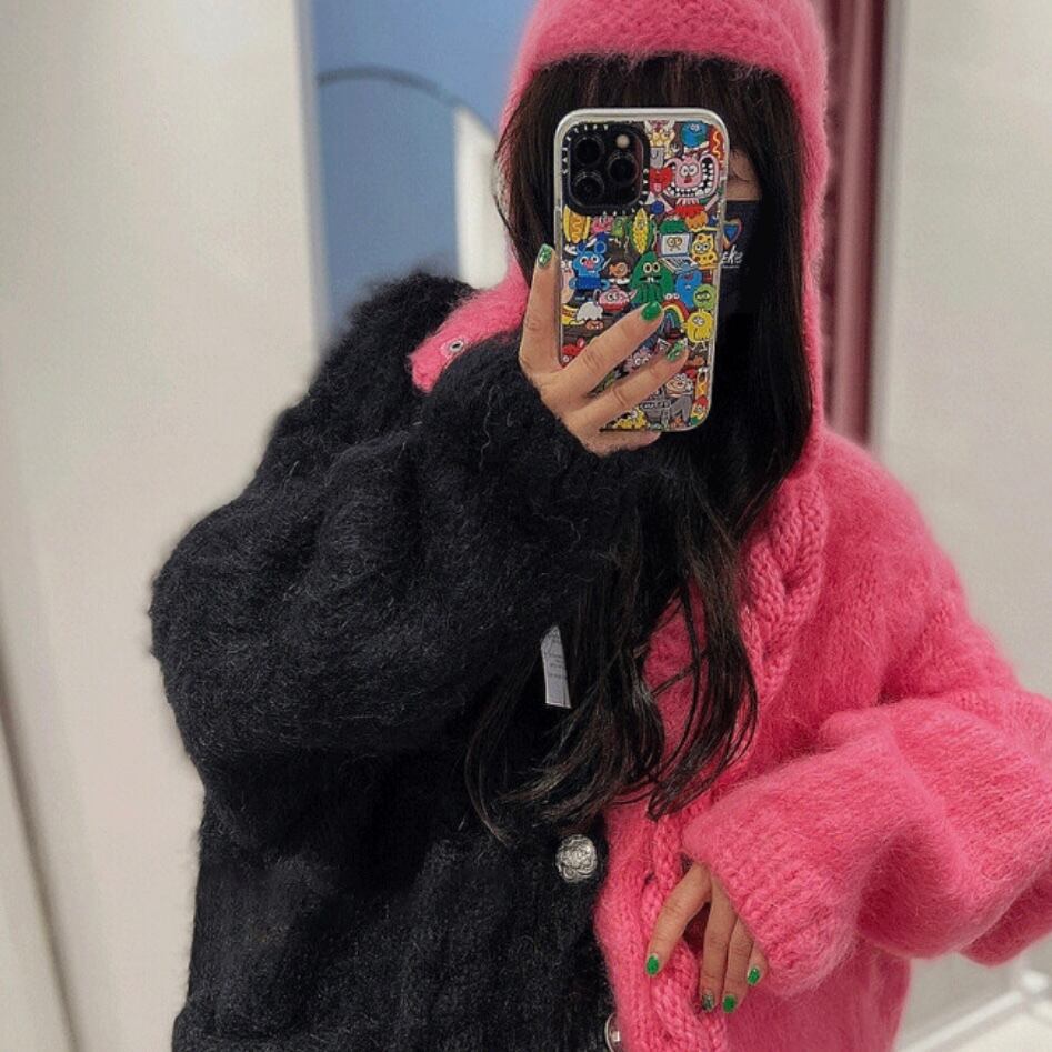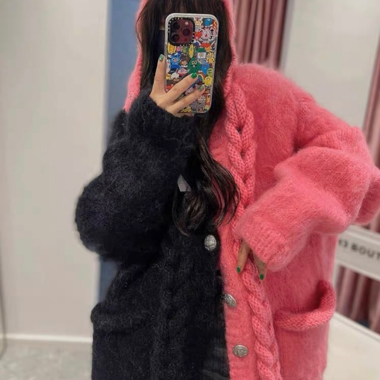 NT-0098 ウール ツートーンカラー 編み込み フード付き ニット 長袖 レディース カジュアル シンプル 可愛い ナチュラル お洒落