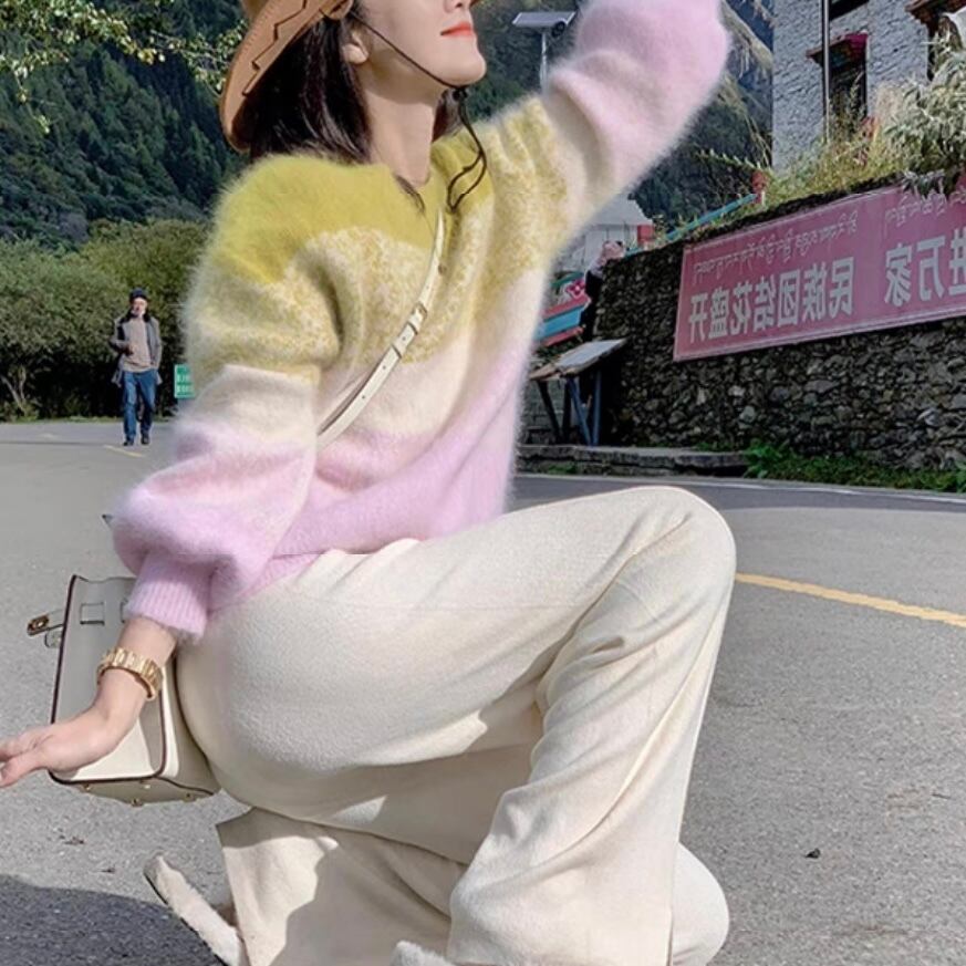 NT-0099 パステルカラー グラデーション ソフト ニット 長袖 レディース カジュアル シンプル 可愛い ナチュラル お洒落