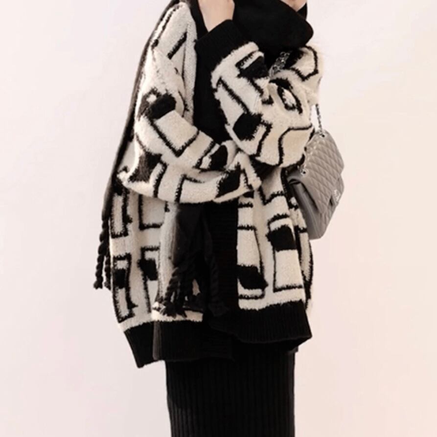 NT-0100 厚手 ニット カーディガン 幾何学模様 長袖 レディース カジュアル シンプル 可愛い ナチュラル お洒落