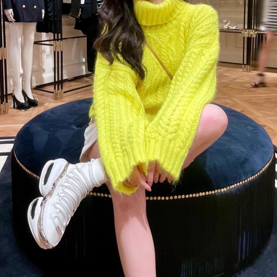 NT-0104 蛍光 イエロー タートルネック ニット 長袖 レディース カジュアル シンプル 可愛い ナチュラル お洒落