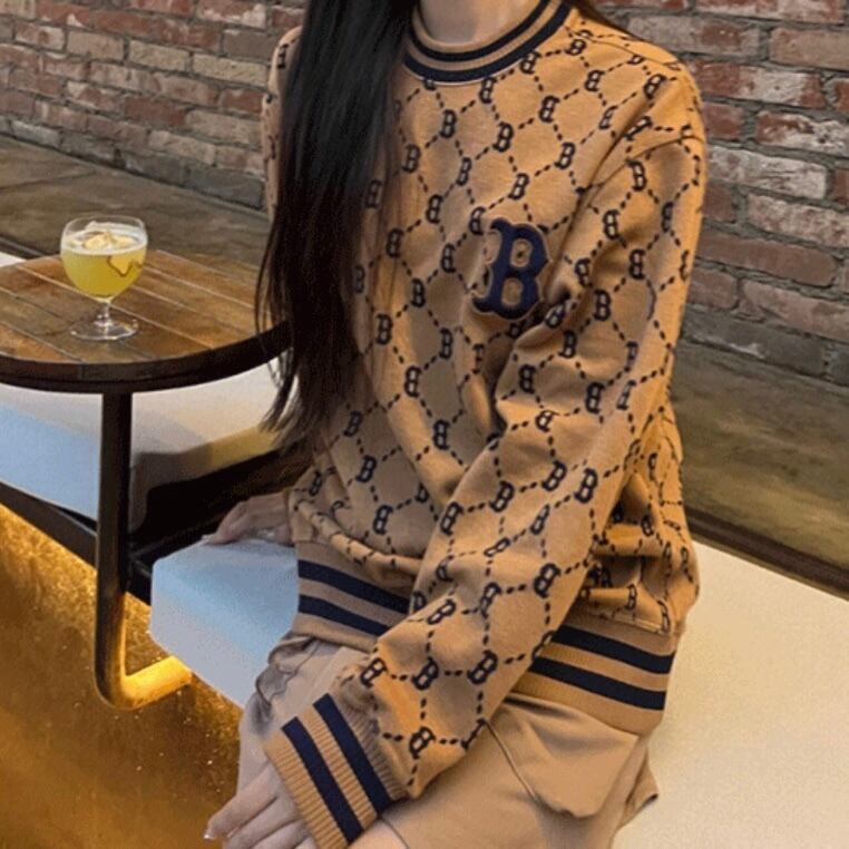 TS-0045 B柄 トップス 長袖 ラウンドネック ライン レディース カジュアル シンプル 可愛い ナチュラル お洒落