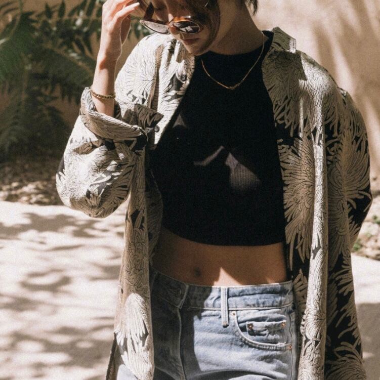 BL-0001 菊プリント 柄 シャツ クール ストリート カジュアル レディース シンプル 可愛い お洒落 上品