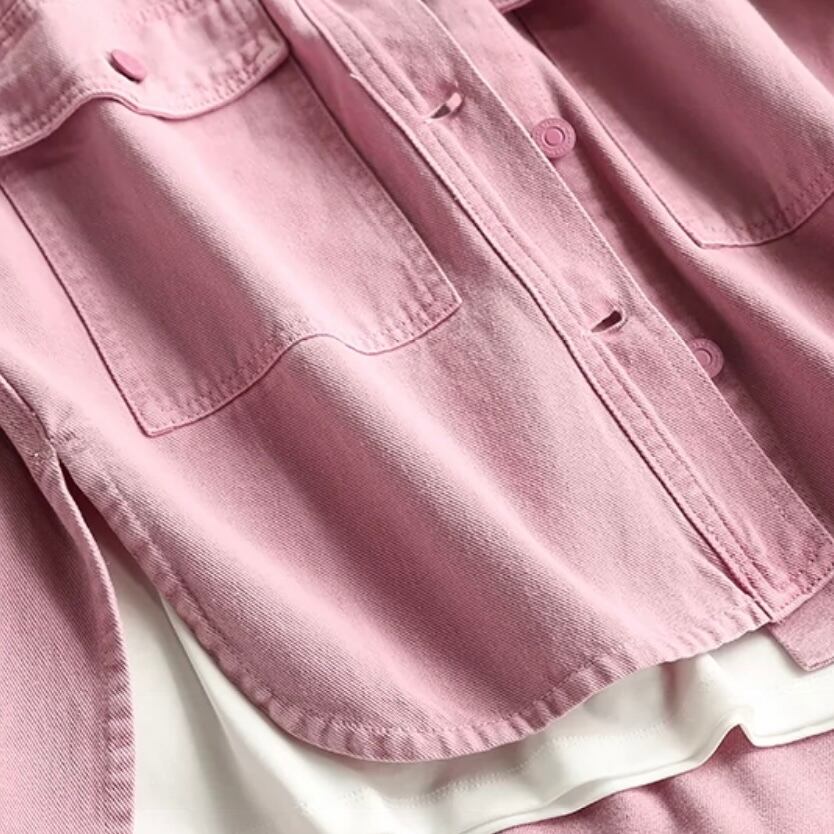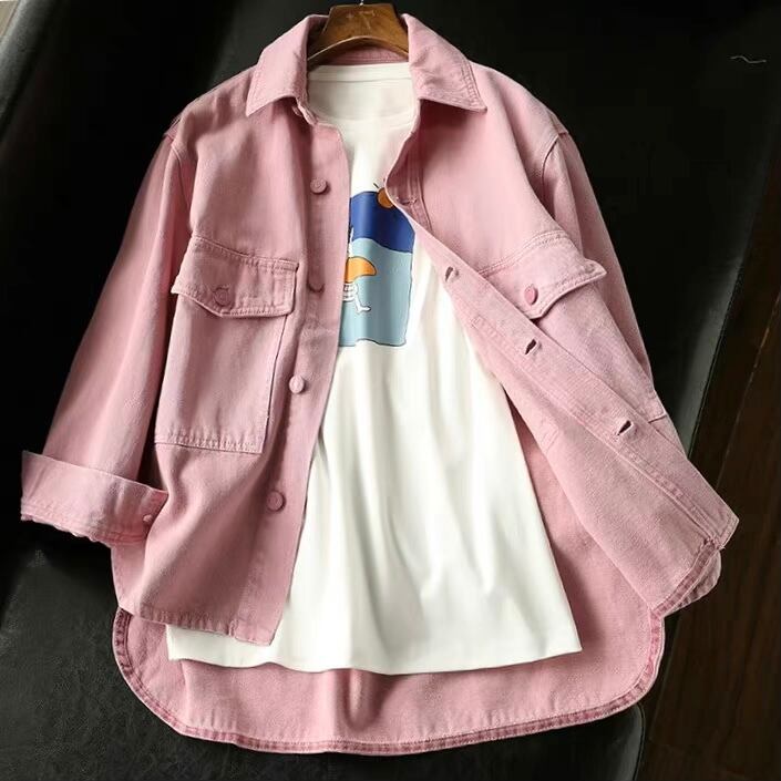 BL-0002 ピンク デニム シャツ ストリート カジュアル レディース シンプル 可愛い お洒落 上品