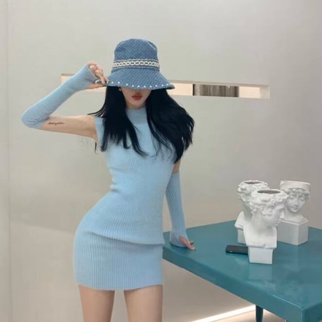 OP-0001 スリーブレス タイト ニット ワンピース ミニ丈 レディース カジュアル シンプル 可愛い ナチュラル お洒落