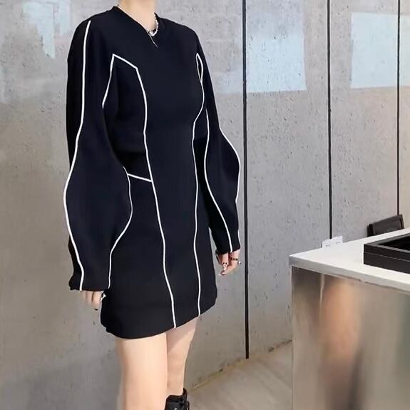 OP-0007 ミニマルデザイン ミニ丈 長袖 ワンピース オールインワン レディース カジュアル シンプル 可愛い ナチュラル お洒落