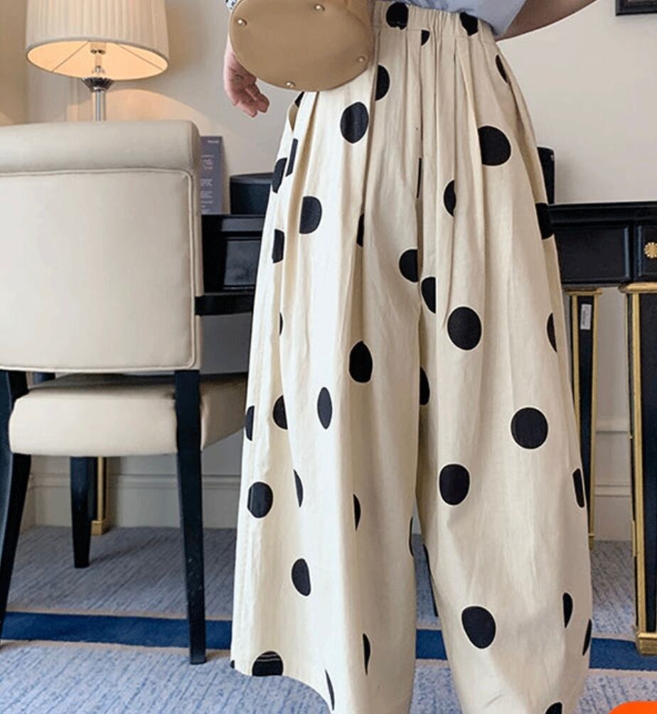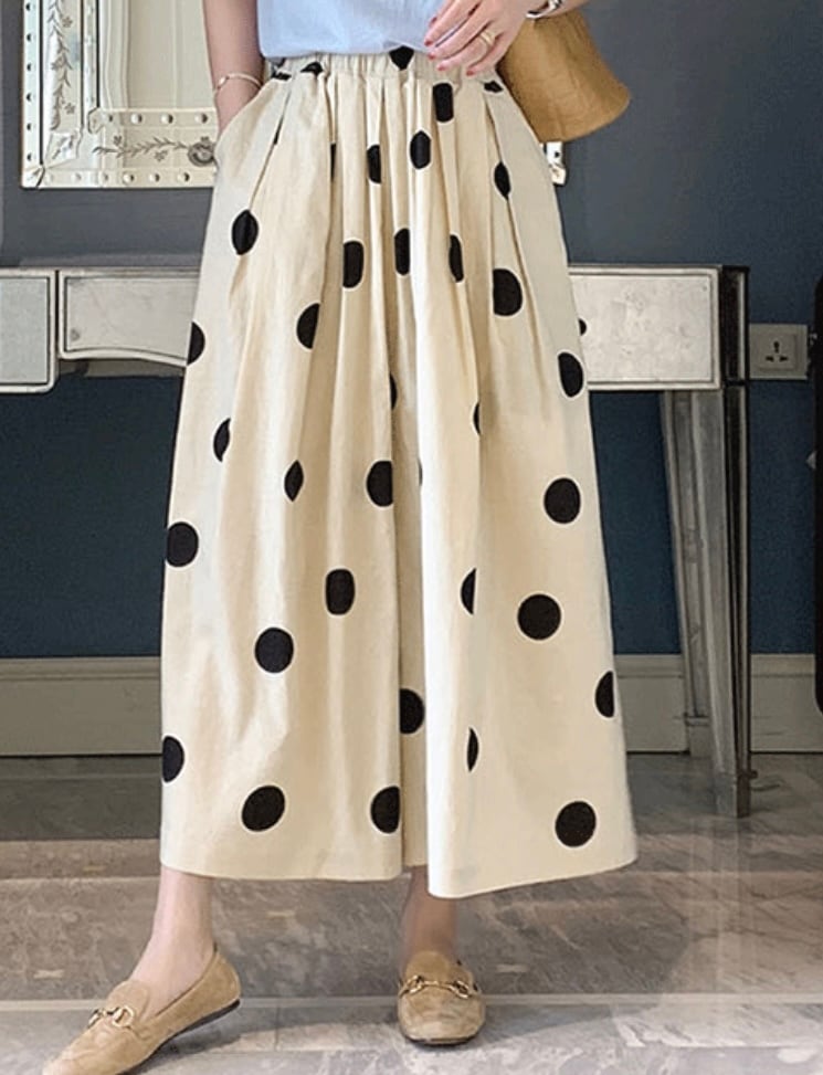PT-0013 水玉柄 ワイド パンツ 上品 レディース カジュアル シンプル 可愛い ナチュラル お洒落