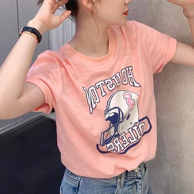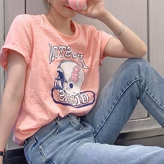 TS-0031 アメリカン ビンテージ ラグビー プリント Tシャツ トップス 半袖 レディース カジュアル シンプル 可愛い ナチュラル お洒落
