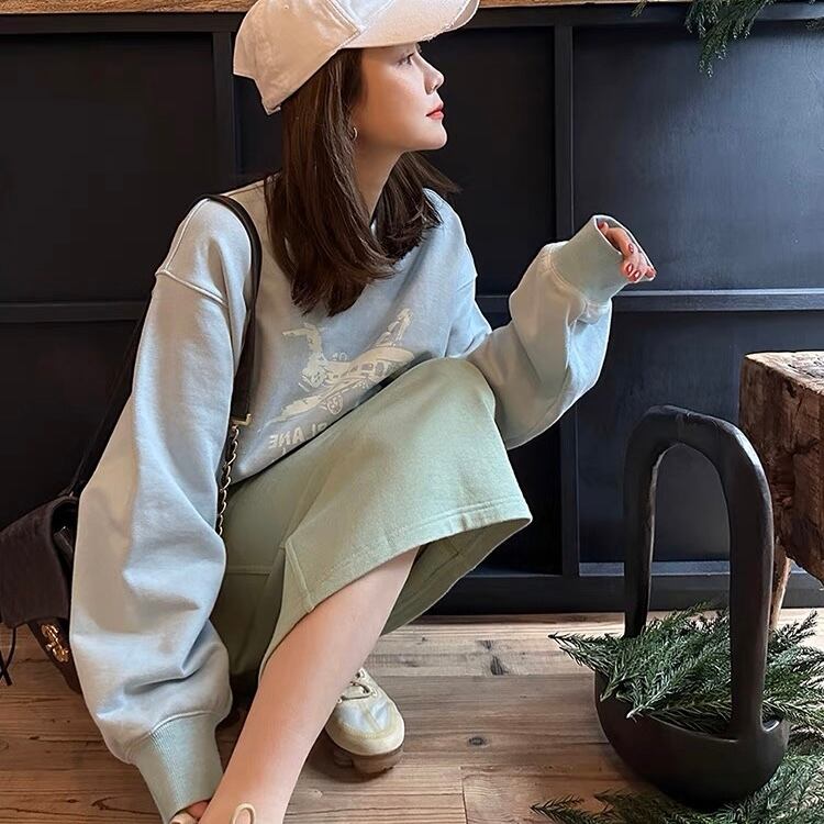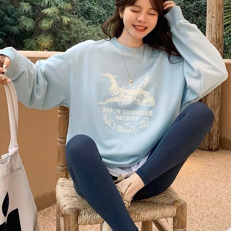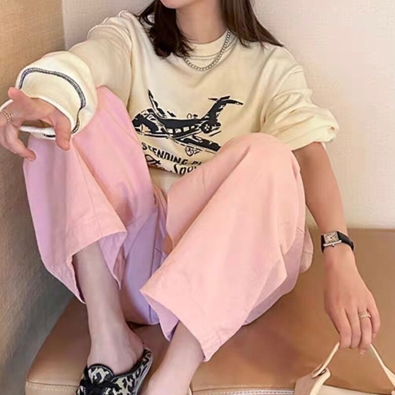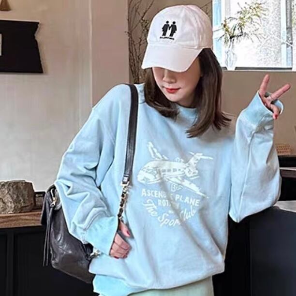 TS-0034 飛行機 ペインティング プリント Tシャツ トップス 長袖 レディース カジュアル シンプル 可愛い ナチュラル お洒落