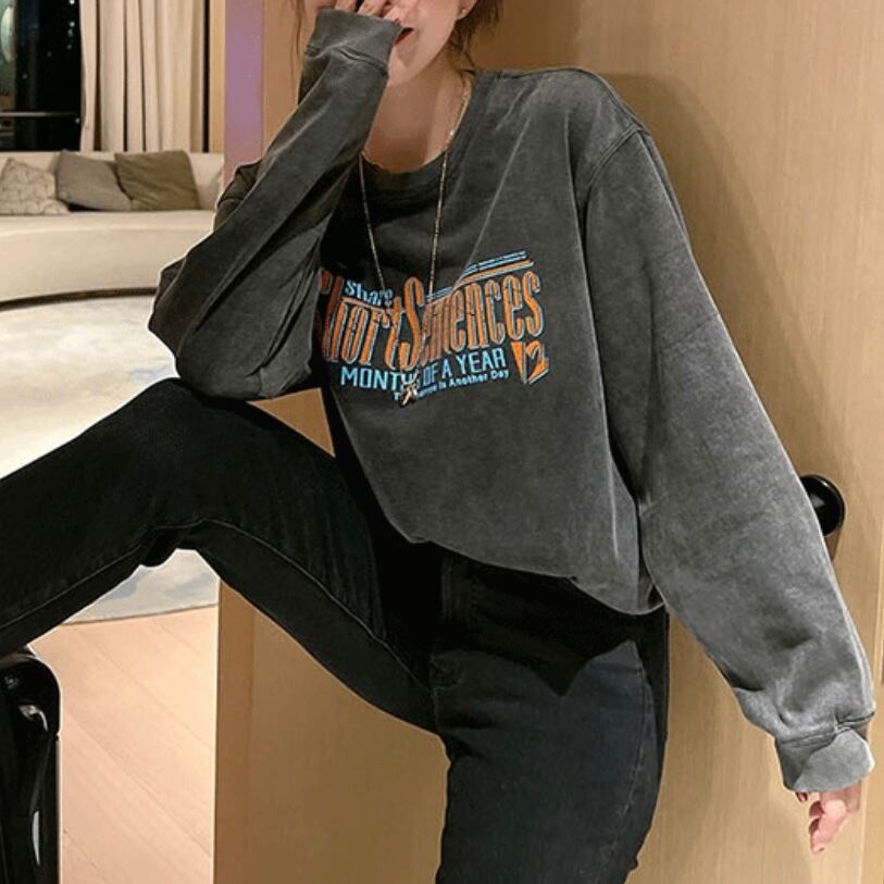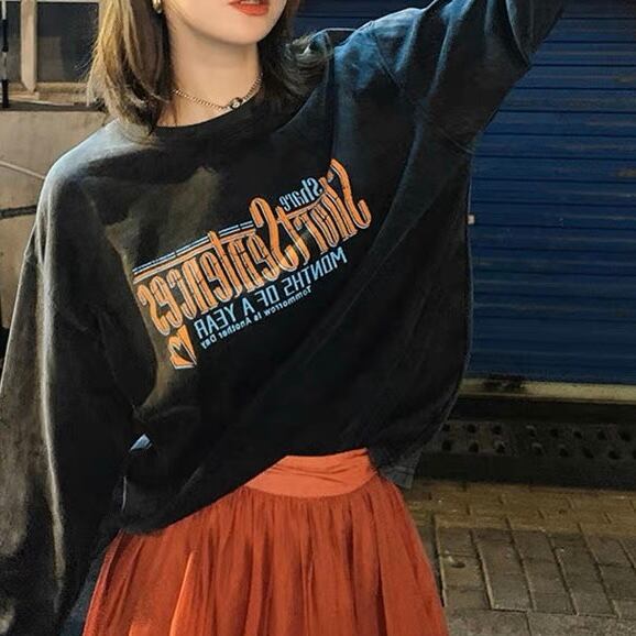 TS-0051 ラウンドネック レタリング プリント Tシャツ トップス 長袖 レディース カジュアル シンプル 可愛い ナチュラル お洒落