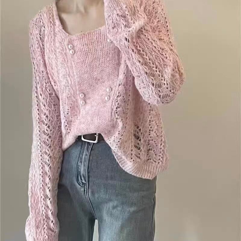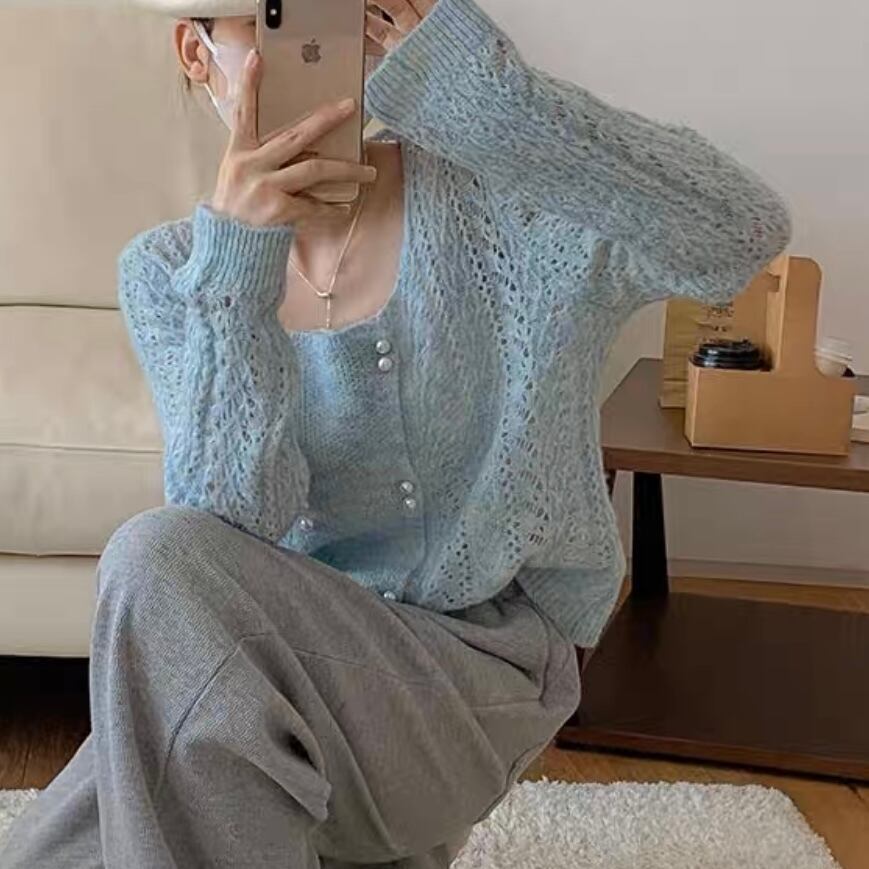 NT-0118 ダブルボタン カラー ニット カーディガン トップス 長袖 レディース カジュアル シンプル 可愛い 上品お洒落
