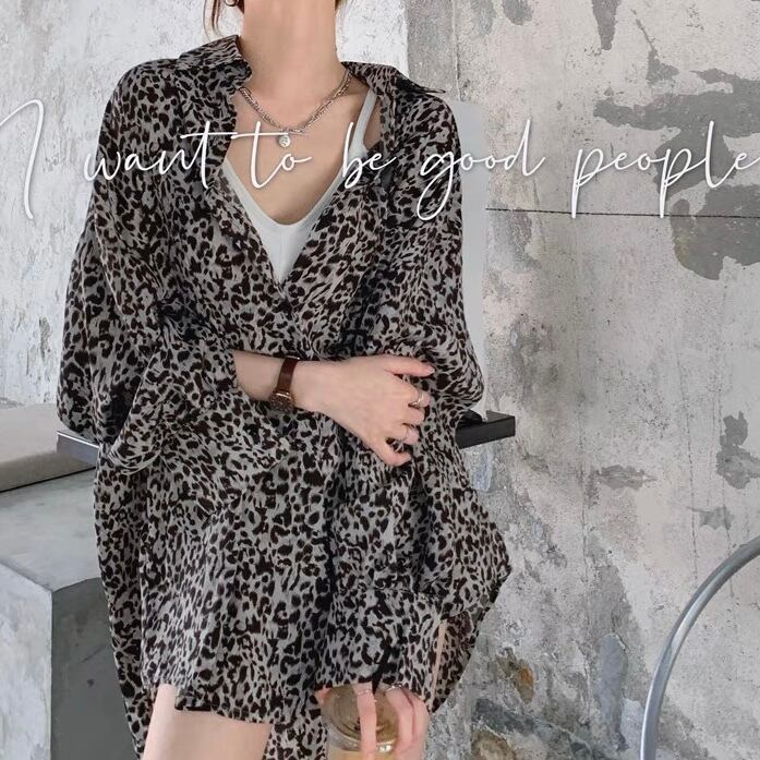 BL-0020 ヒョウ柄 オーバーサイズ ルーズフィット シャツ トップス 長袖 レディース カジュアル シンプル 可愛い 上品 お洒落
