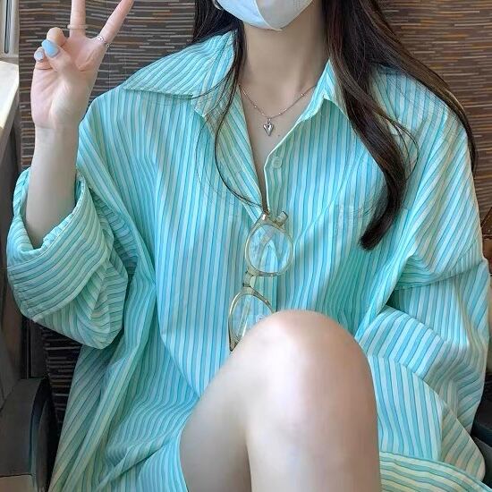 BL-0022 ストライプ オーバーサイズ シャツ トップス 長袖 レディース カジュアル シンプル 可愛い クール お洒落