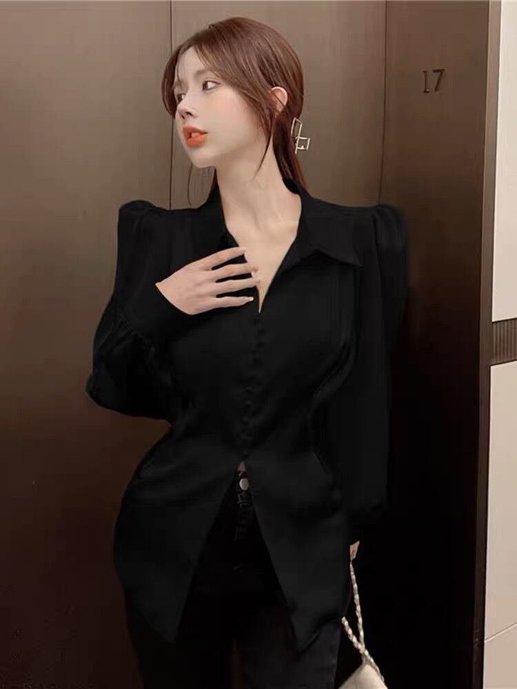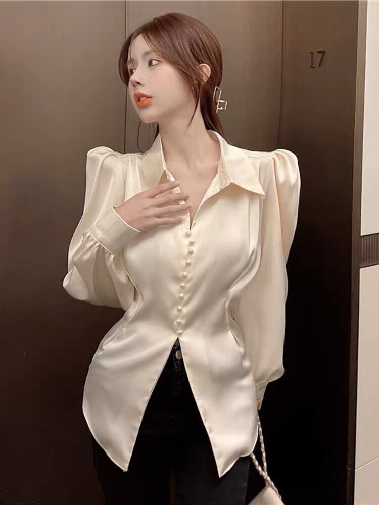 BL-0026 フレンチ シルク シャツ トップス 長袖 レディース カジュアル シンプル 可愛い クール お洒落