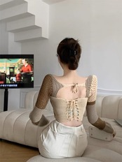 NT-0119 ストライプ スクエアネック ニット セクシー トップス フレア袖 レディース カジュアル シンプル 可愛い ポップ お洒落