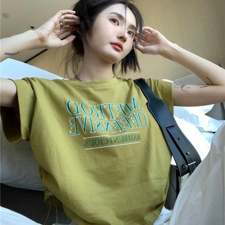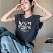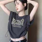 TS-0064 レタリング 絞り ハーフスリーブ Tシャツ トップス レディース カジュアル シンプル 可愛い 上品 お洒落