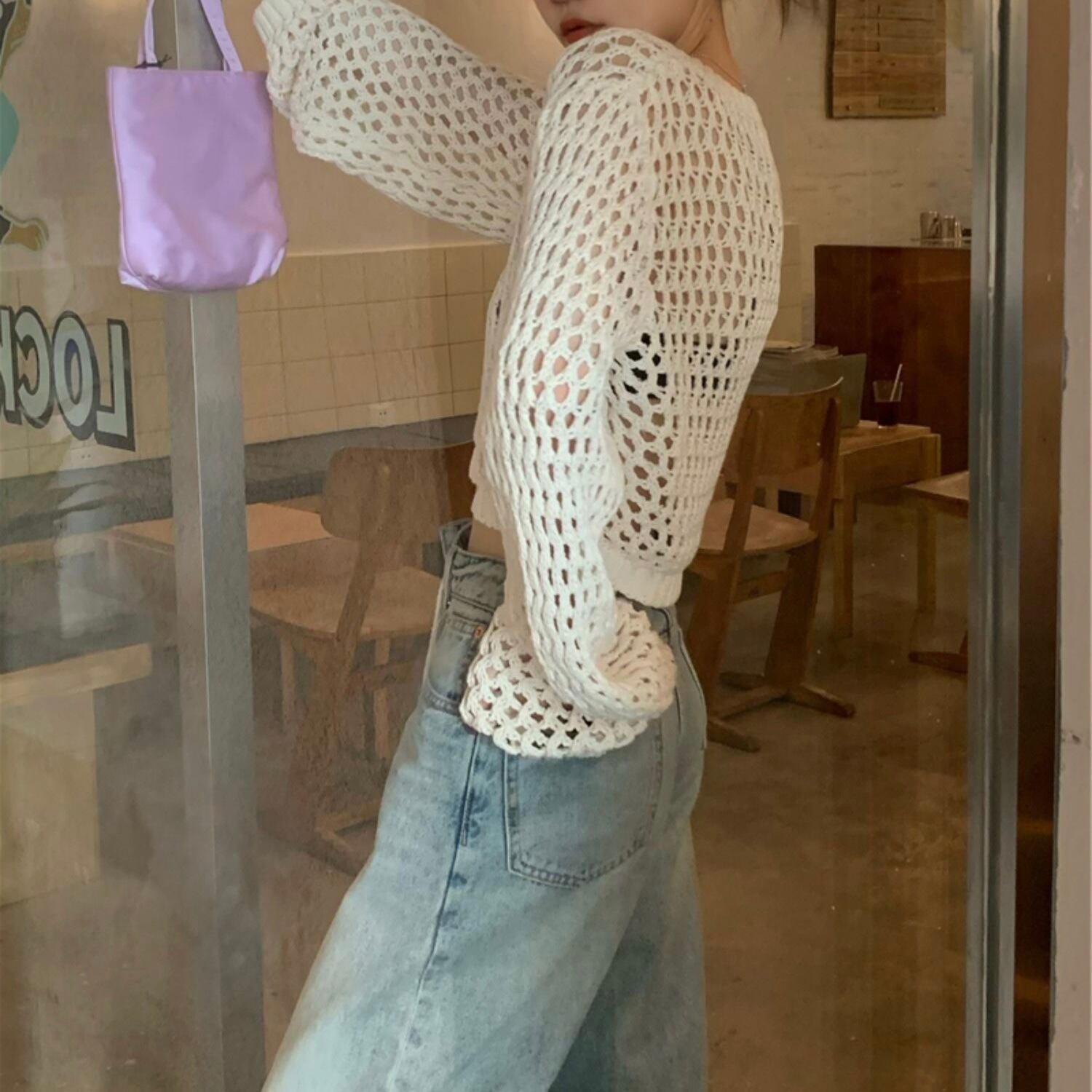 NT-0126 メッシュ ニット 長袖 トップス レディース カジュアル シンプル 可愛い お洒落 ルーズ