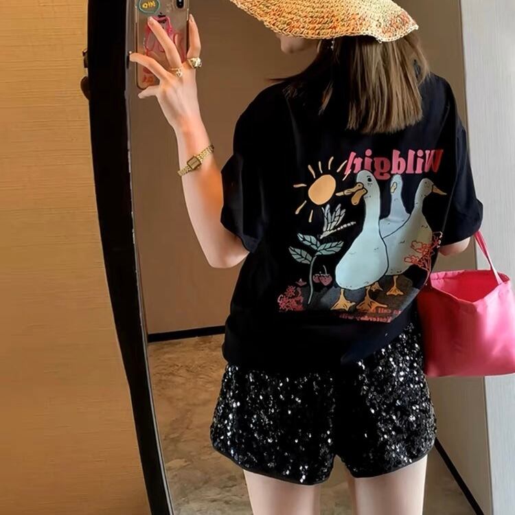 TS-0077 アヒル 半袖 Tシャツ トップス レディース カジュアル シンプル 可愛い 上品 お洒落 きれいめ