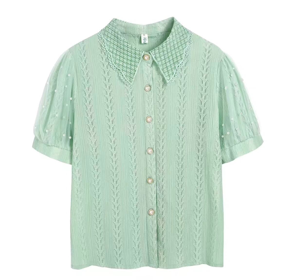 TS-0095 半袖 ニット 襟付き トップス レディース カジュアル シンプル 可愛い 上品 お洒落 きれいめ