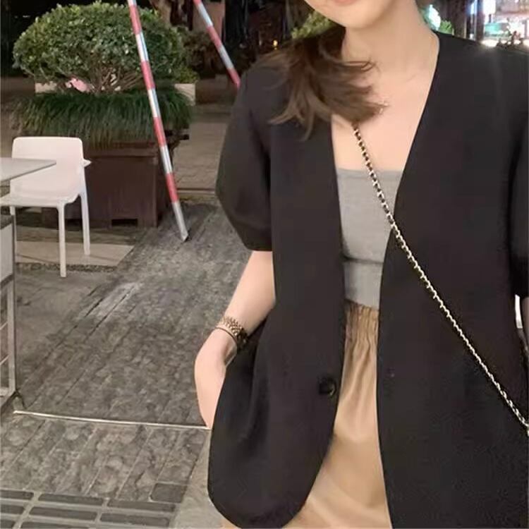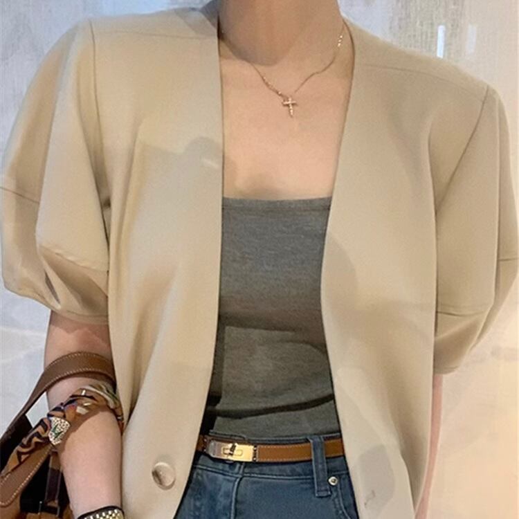 TS-0098 半袖 ジャケット トップス レディース カジュアル シンプル 可愛い 上品 お洒落 きれいめ
