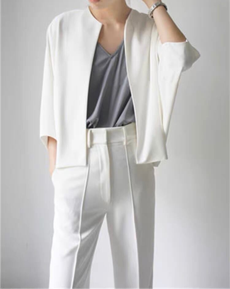 JK-0026 7分丈 クール ジャケット トップス レディース カジュアル シンプル 可愛い 上品 お洒落 きれいめ