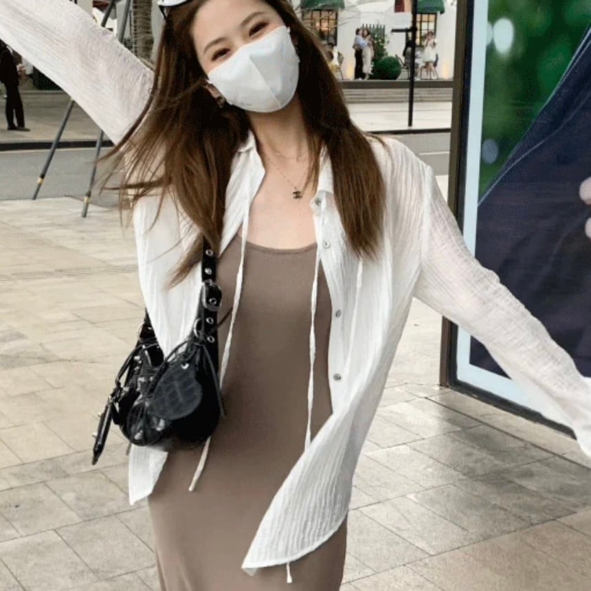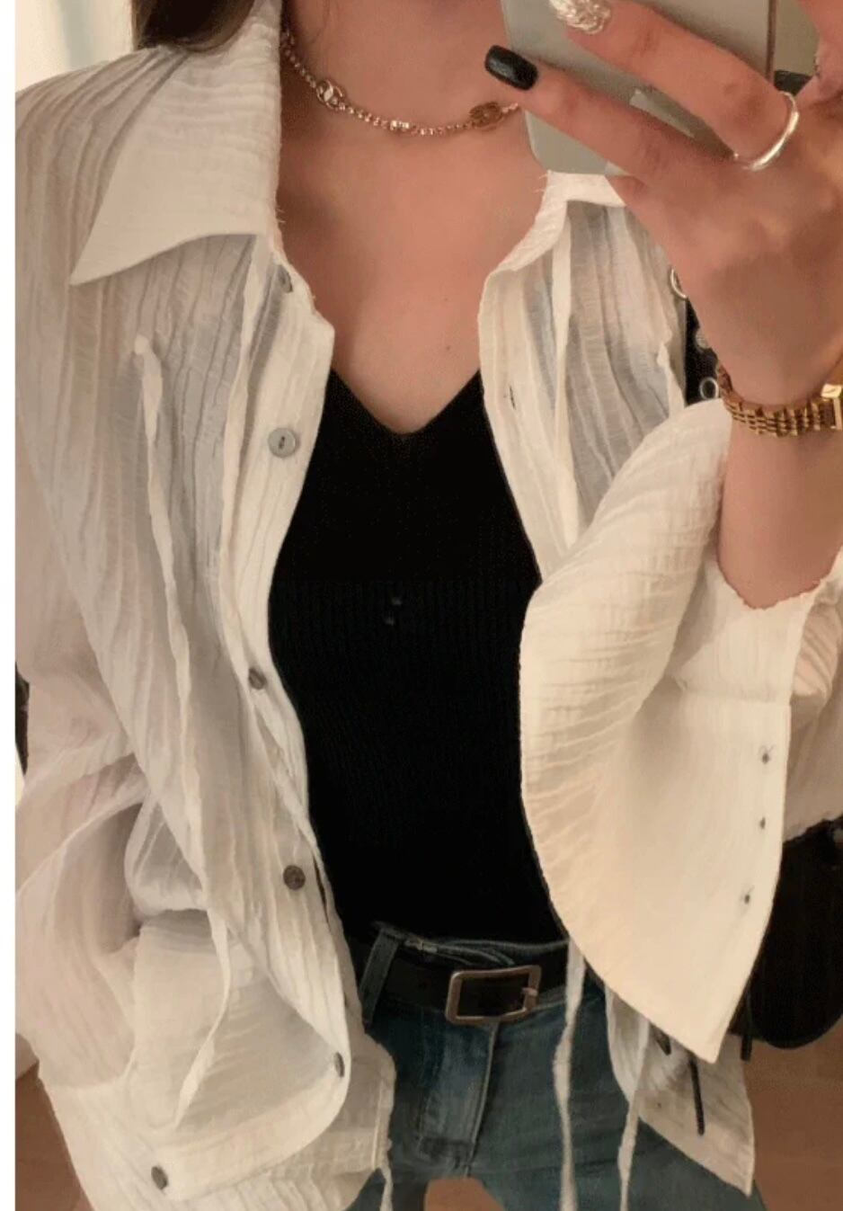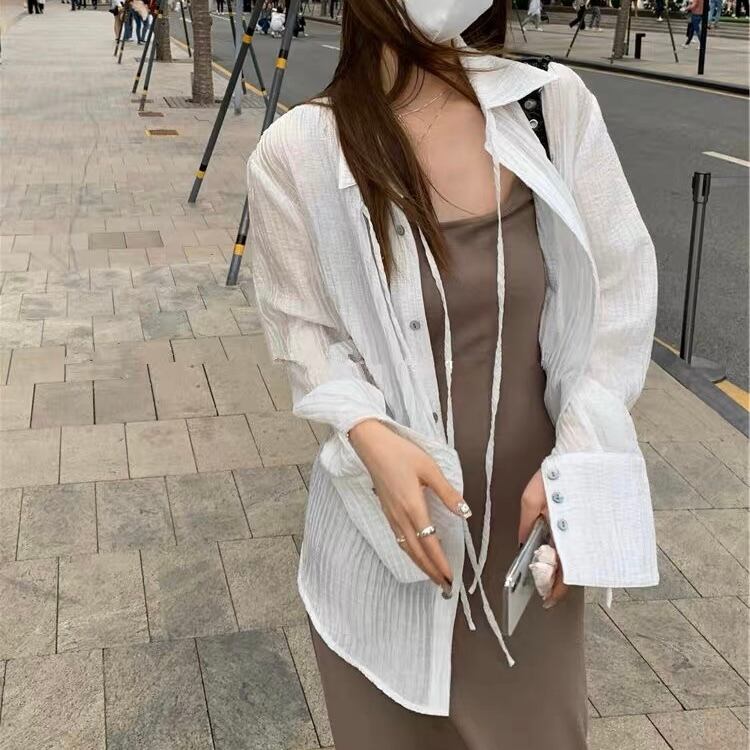 BL-0037 しわ加工 シースルー 無地 シャツ 長袖 トップス レディース カジュアル シンプル 可愛い 上品 お洒落 きれいめ