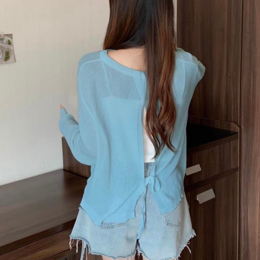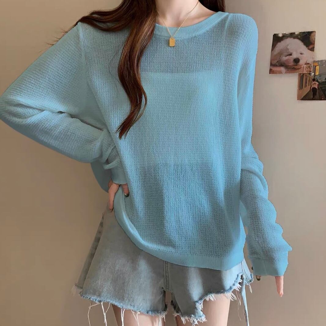 TS-0111 シースルー ニット カラー ルーズフィット 長袖 トップス レディース カジュアル シンプル 可愛い 上品 お洒落 きれいめ