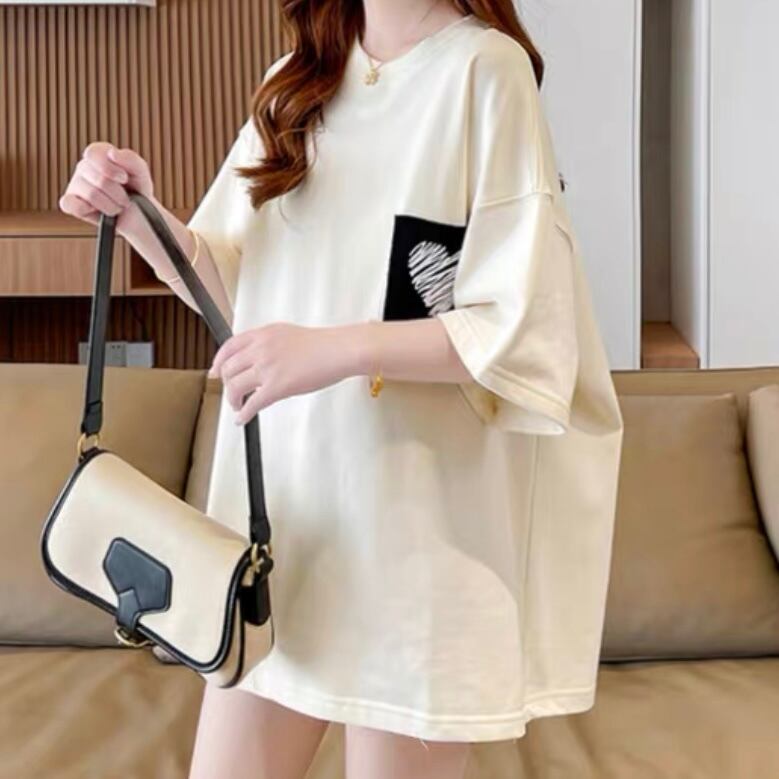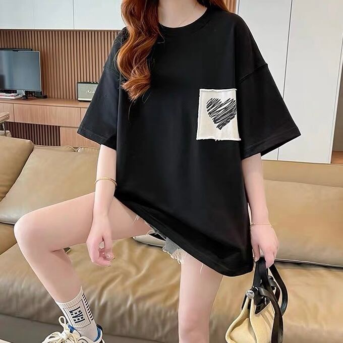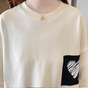 TS-0113 ハート ワンポイント Tシャツ ルーズフィット 半袖 トップス レディース カジュアル シンプル 可愛い 上品 お洒落 きれいめ