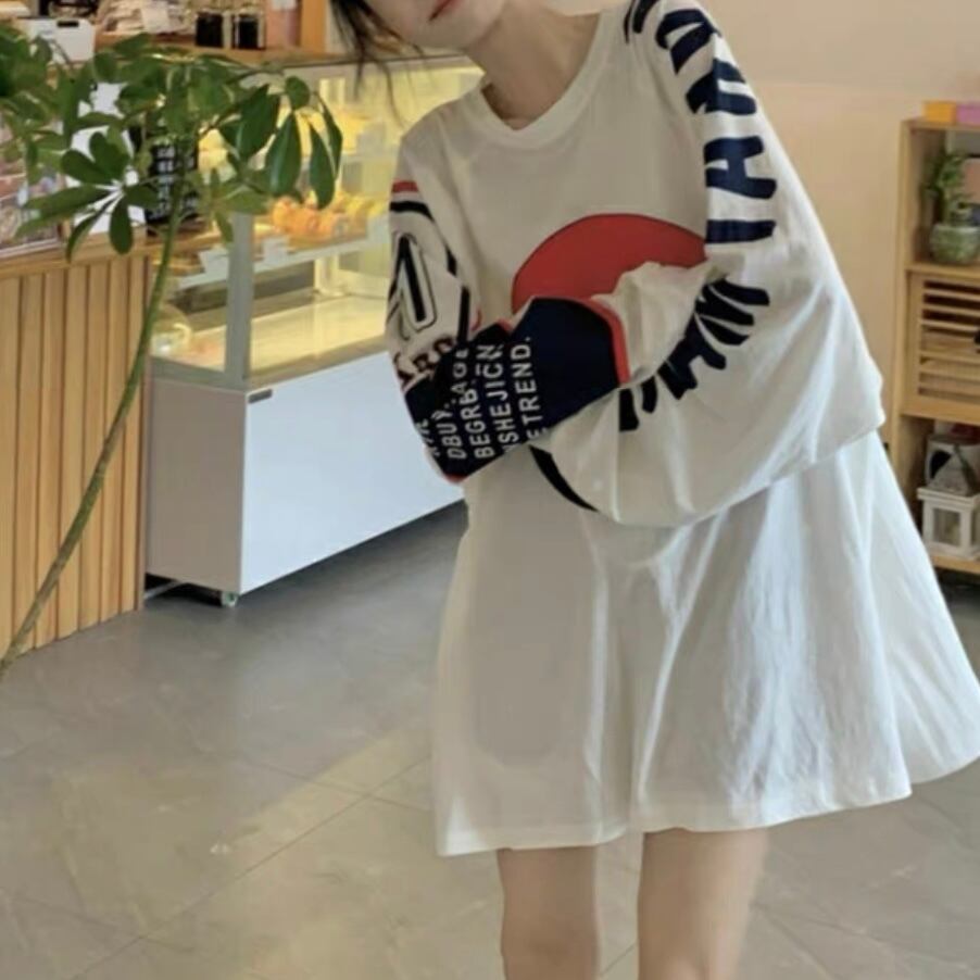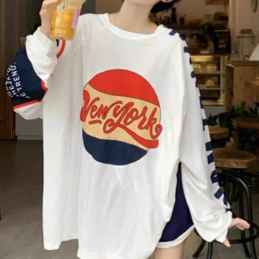 TS-0115 ポップ プリント Tシャツ オーバーサイズ ルーズフィット 長袖 トップス レディース カジュアル シンプル 可愛い 上品 お洒落 きれいめ