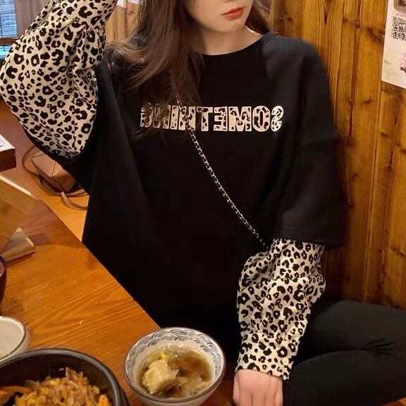 TS-0122 ルーズフィット ツーピース風 豹柄 長袖 トップス レディース カジュアル シンプル 可愛い 上品 お洒落 きれいめ