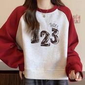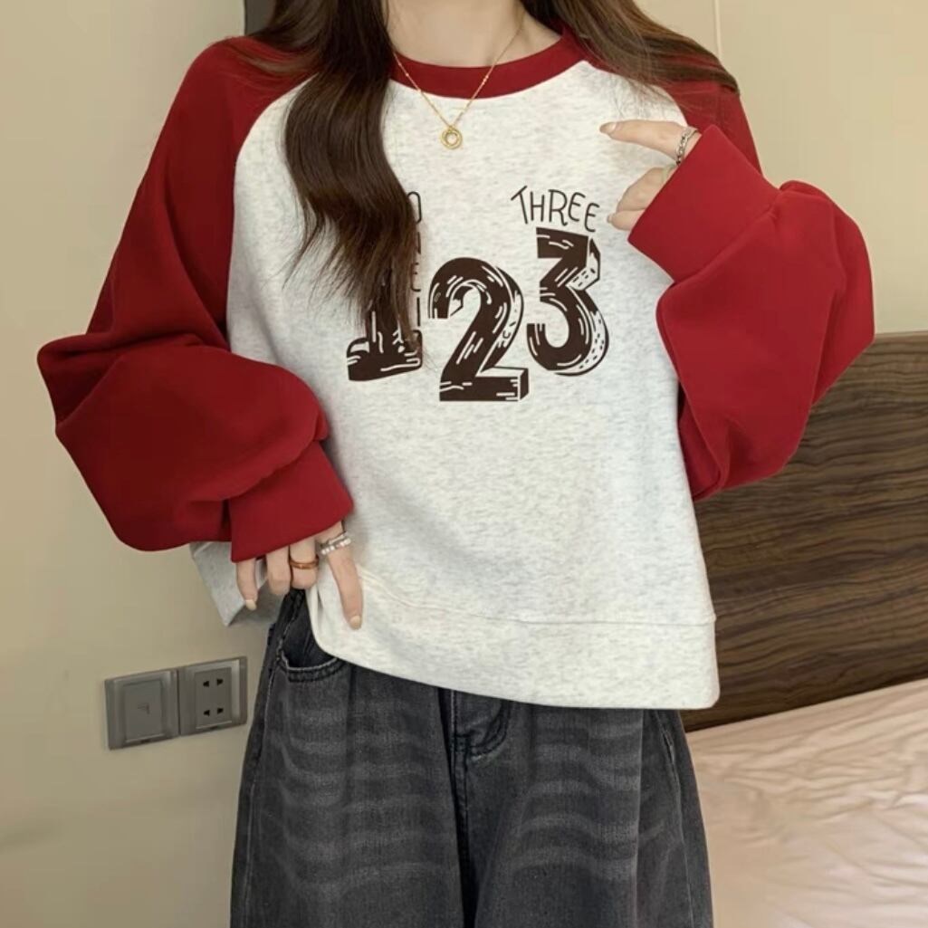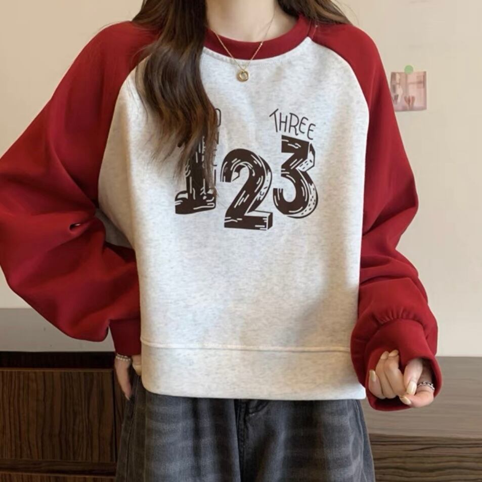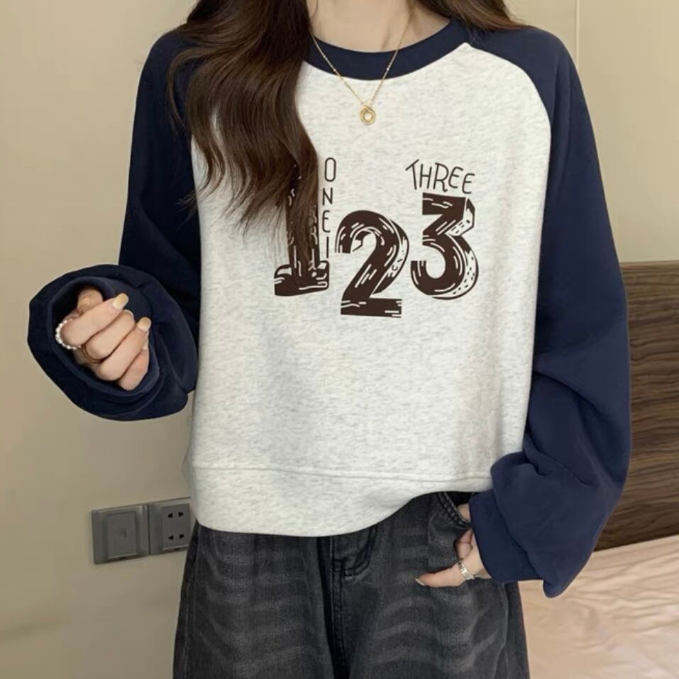 TS-0123 バイカラー ナンバー 長袖 トップス レディース カジュアル シンプル 可愛い 上品 お洒落 きれいめ