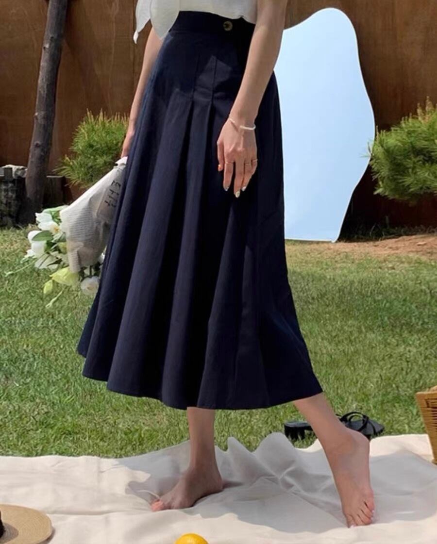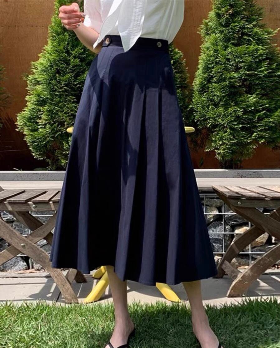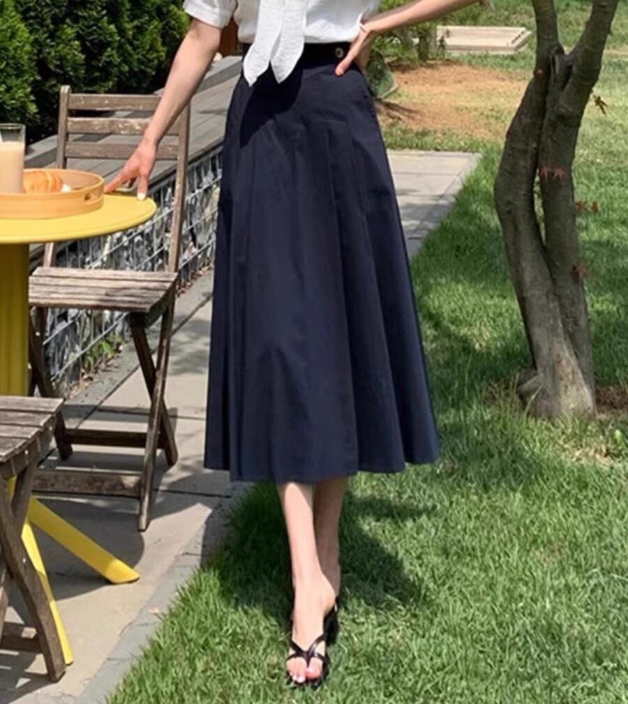 SK-0021 膝下丈 Aライン ひだ スカート ハイウエスト レディース シンプル 可愛い 膝下丈 ナチュラル お洒落 クール 上品 きれいめ