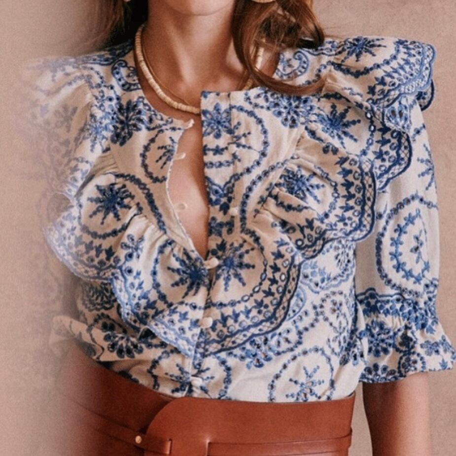 BL-0041 アジアン パンチング フリル ブラウス 半袖 トップス レディース カジュアル シンプル 可愛い 上品 お洒落 きれいめ