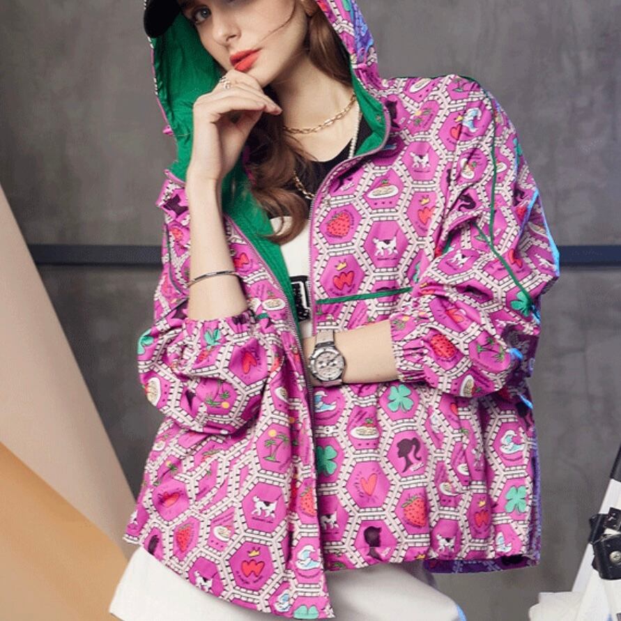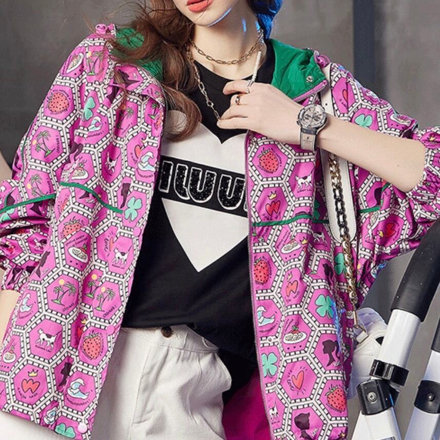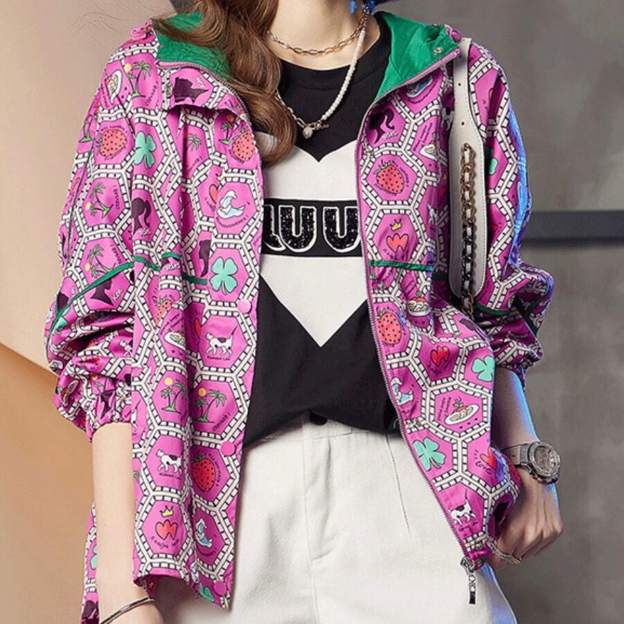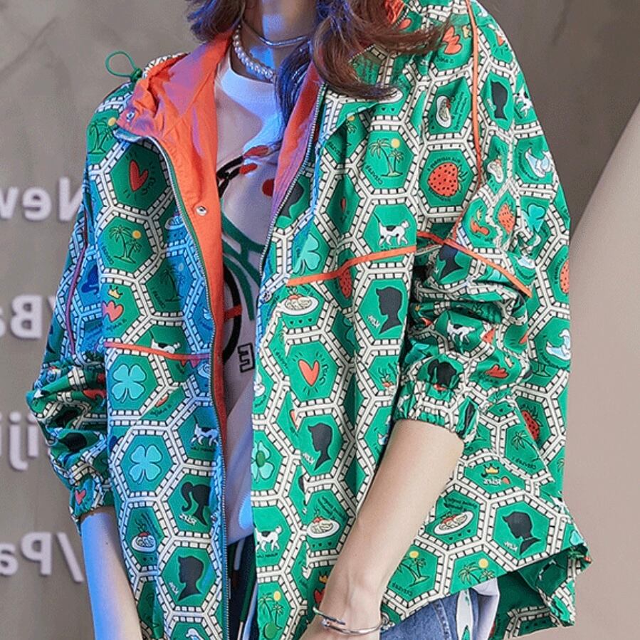 JK-0031 ポップ 柄 ジャケット フード付き 長袖 トップス レディース カジュアル シンプル 可愛い 上品 お洒落 きれいめ