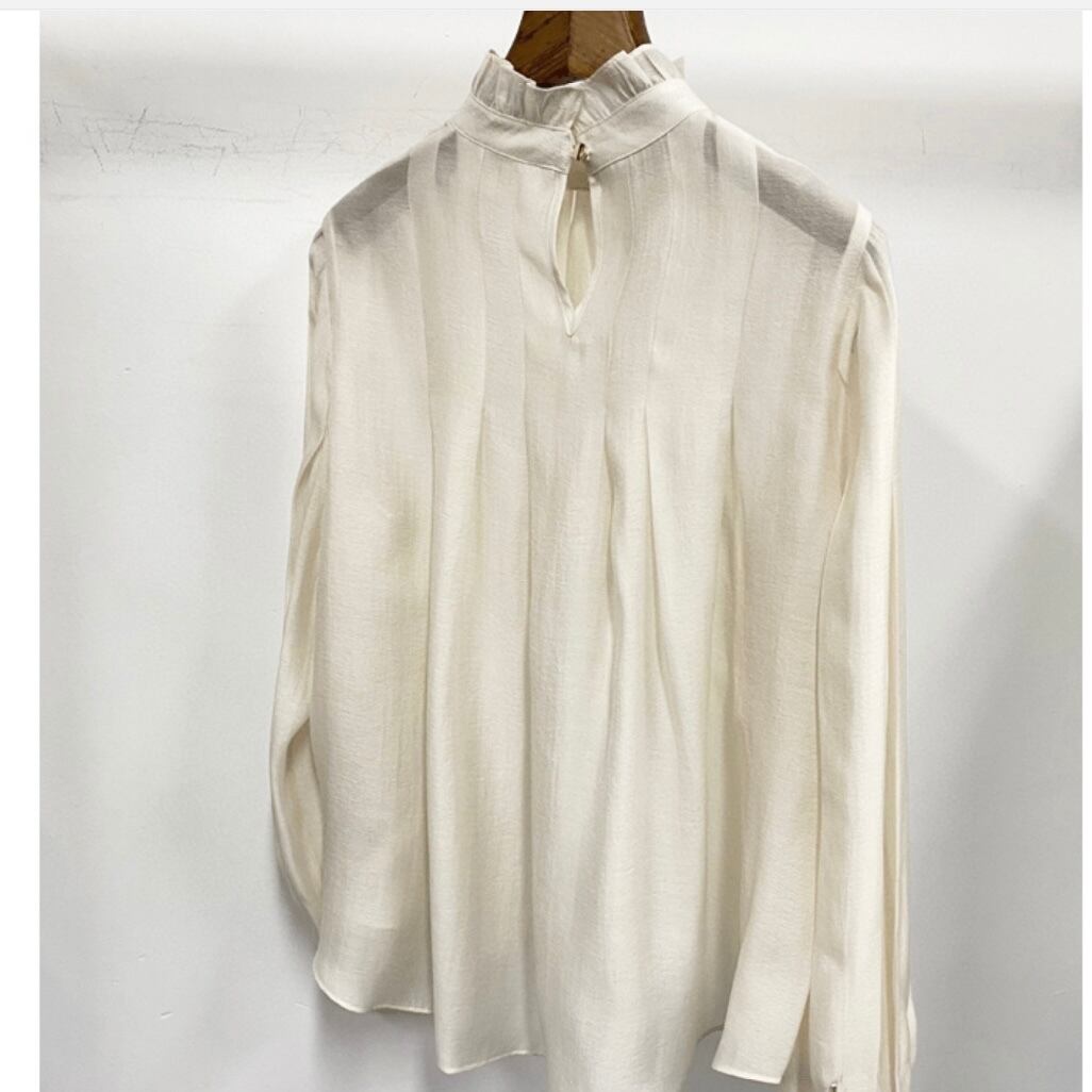 お洒落なハイネックブラウス。