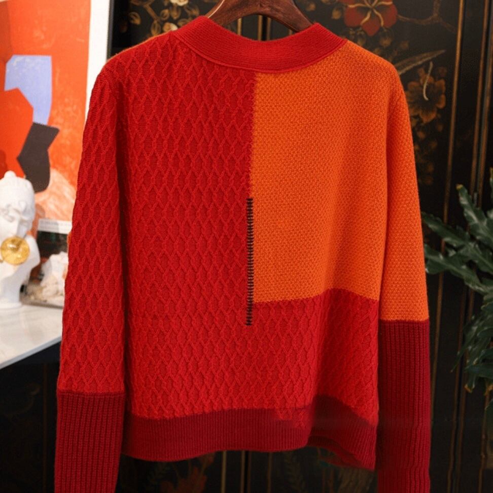 NT-0132 ポップ オレンジ カラー ニット カーディガン トップス レディース カジュアル シンプル 可愛い 上品 お洒落 きれいめ