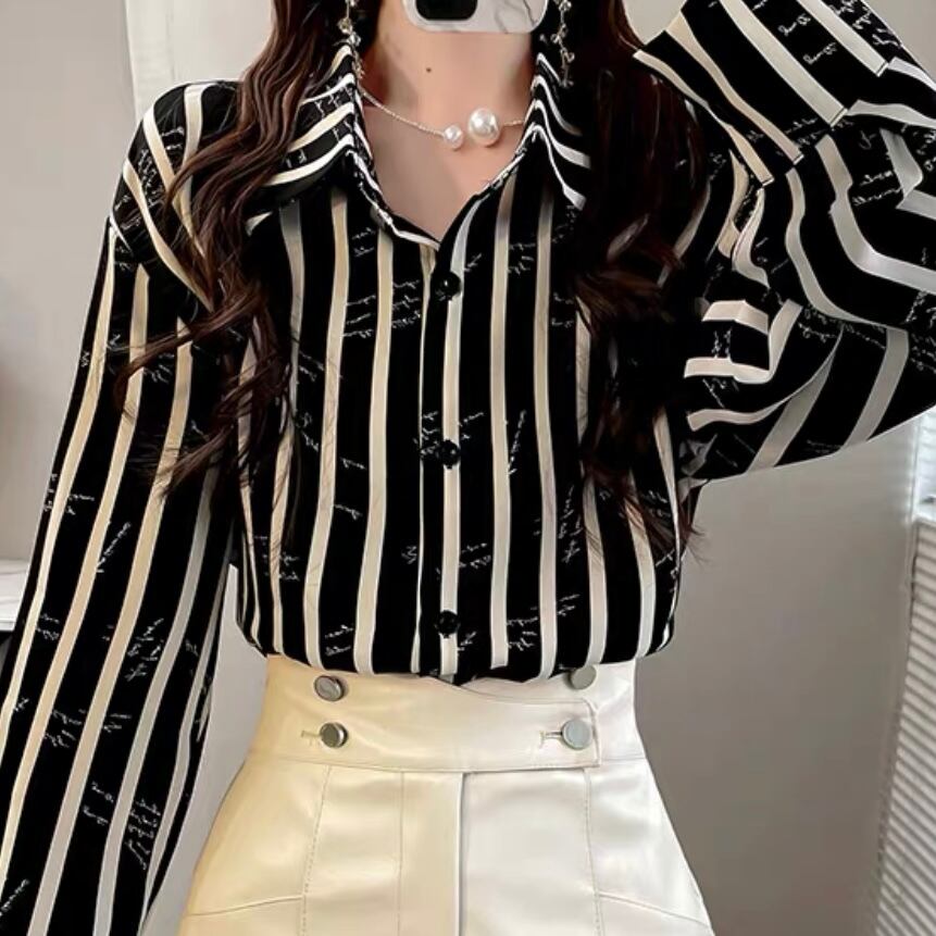 BL-0057 ストライプ柄 シャツ ブラウス 長袖 トップス レディース カジュアル シンプル 可愛い 上品 お洒落 きれいめ