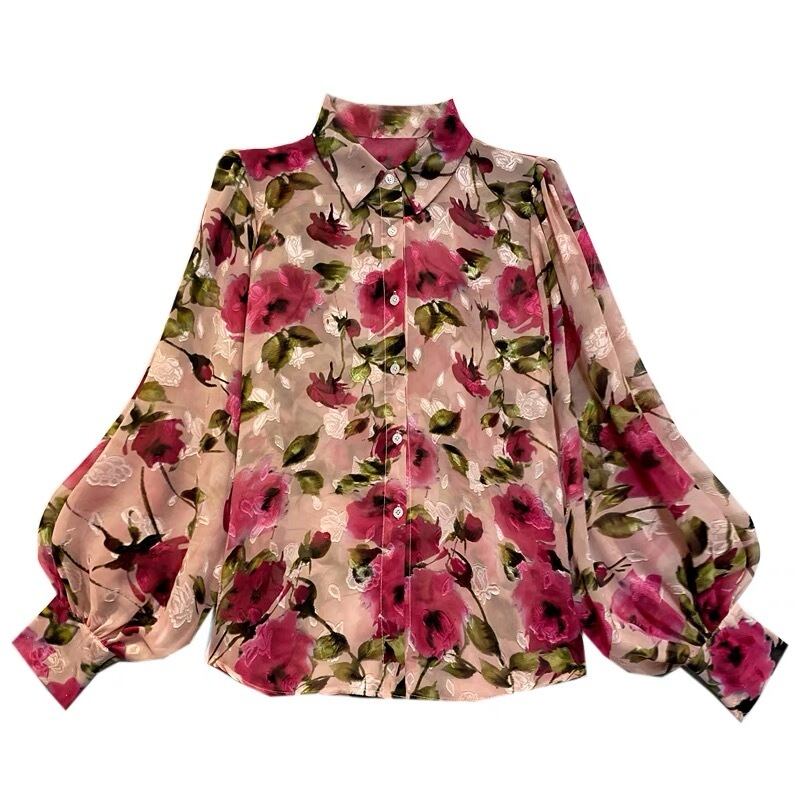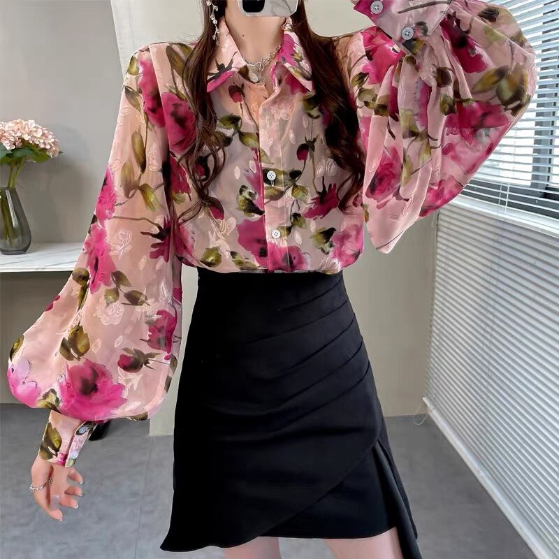 BL-0059 カラー 花柄 シャツ ブラウス 長袖 トップス レディース カジュアル シンプル 可愛い 上品 お洒落 きれいめ