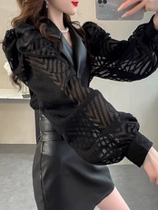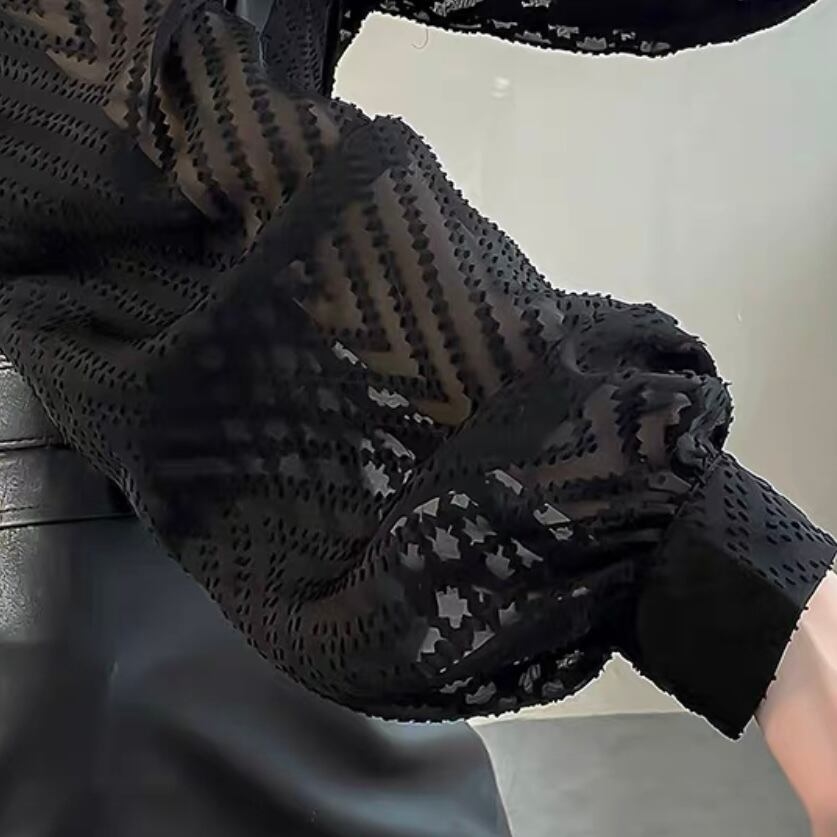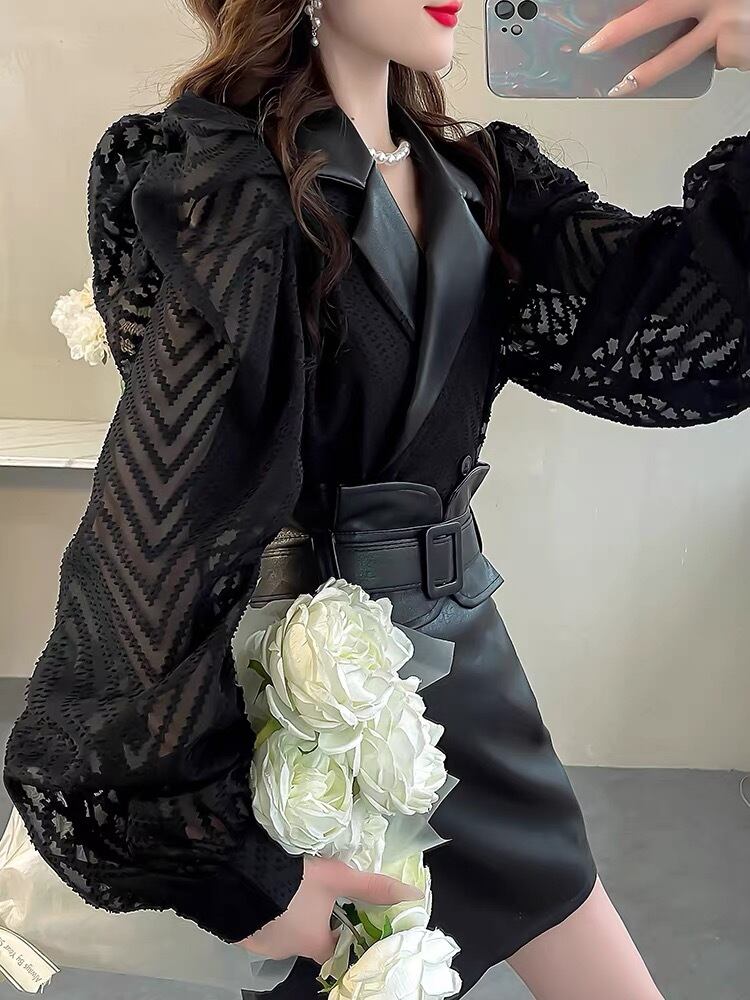 ▫️レザー×柄ランタンスリーブシースルーシャツ