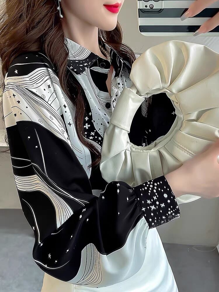 BL-0092 星空柄 ランタンスリーブ シャツ ブラウス 長袖 トップス レディース カジュアル シンプル 可愛い 上品 お洒落 きれいめ