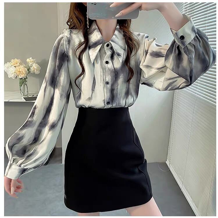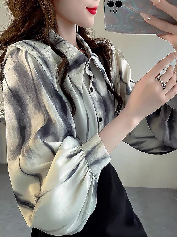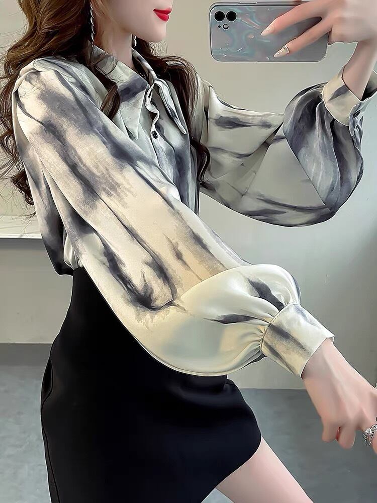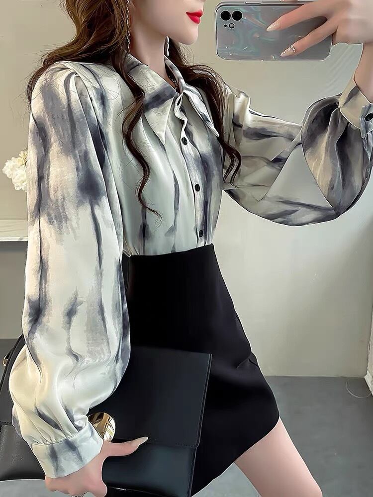 BL-0096 タイダイ ランタンスリーブ シャツ ブラウス 長袖 トップス レディース カジュアル シンプル 可愛い 上品 お洒落 きれいめ