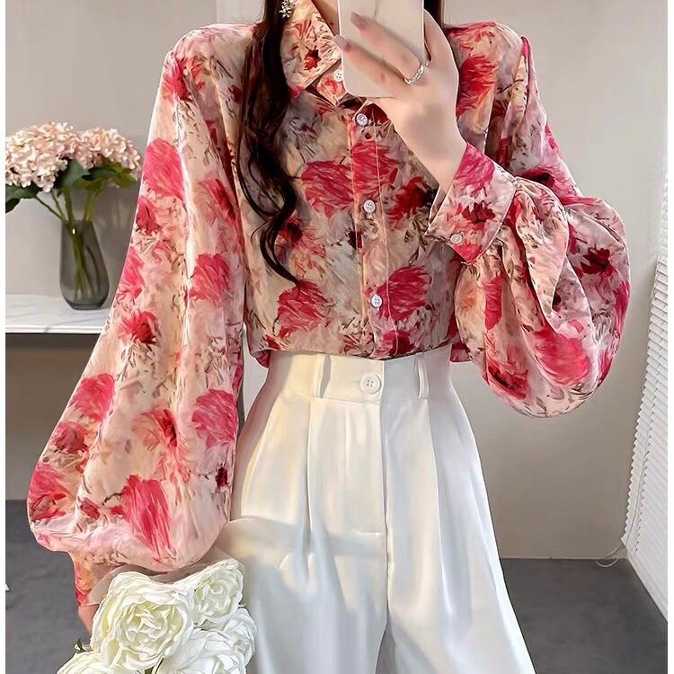 ▫️ピンクボタニカル柄ランタンスリーブシャツ