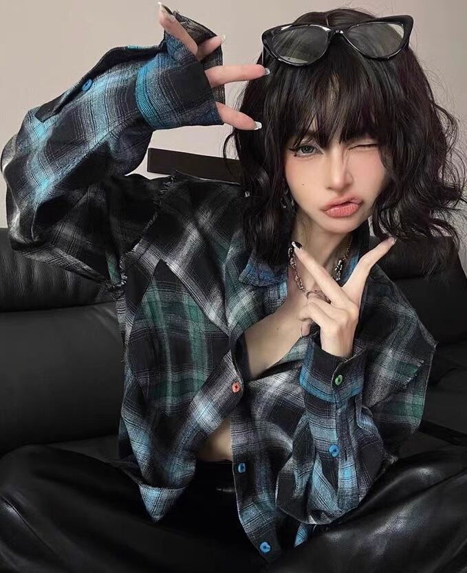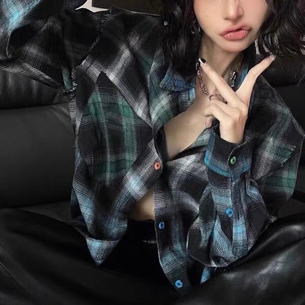 BL-0108 グラデーションカラー チェック柄 シャツ ブラウス 長袖 トップス レディース カジュアル シンプル 可愛い 上品 お洒落 きれいめ