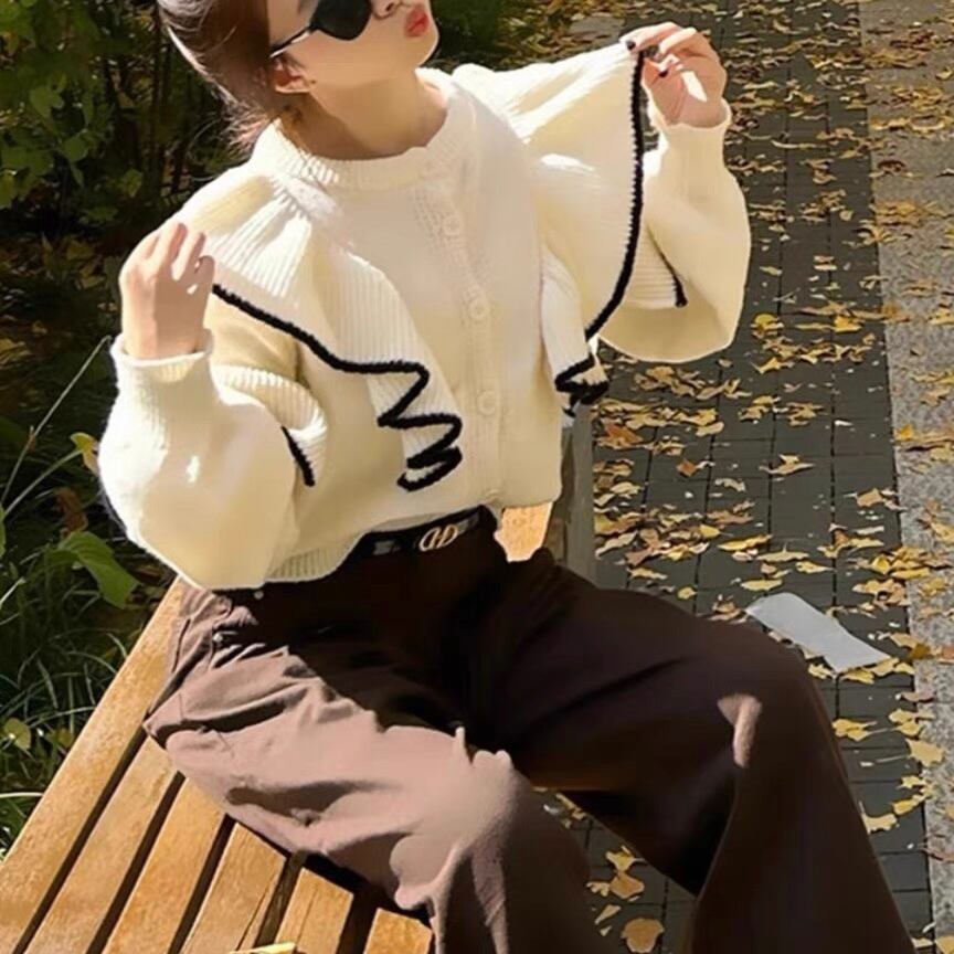 ▫️フリル×バイカラーニットカーディガン