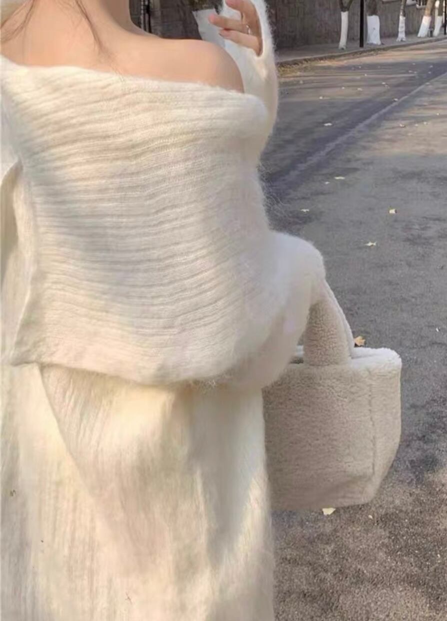 NT-0150 ルーズ ファー オフショル ニット トップス 長袖 レディース カジュアル シンプル 可愛い お洒落 きれいめ